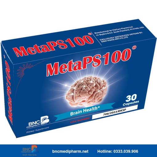 MetaPS100 là sản phẩm được nghiên cứu bởi các chuyên gia dược lý hàng đầu tại Mỹ, có chứa Phosphatidylserine, GABA, 5-HTP…có lợi cho sức khỏe của não bộ, hỗ trợ tăng cường trí nhớ và học tập; cải thiện nhận thức khi bị căng thẳng, bảo vệ tế bào não… được các chuyên gia y tế khuyên dùng và được B.sĩ, T.sĩ Phan Đăng Bình lựa chọn nhập khẩu về Việt Nam