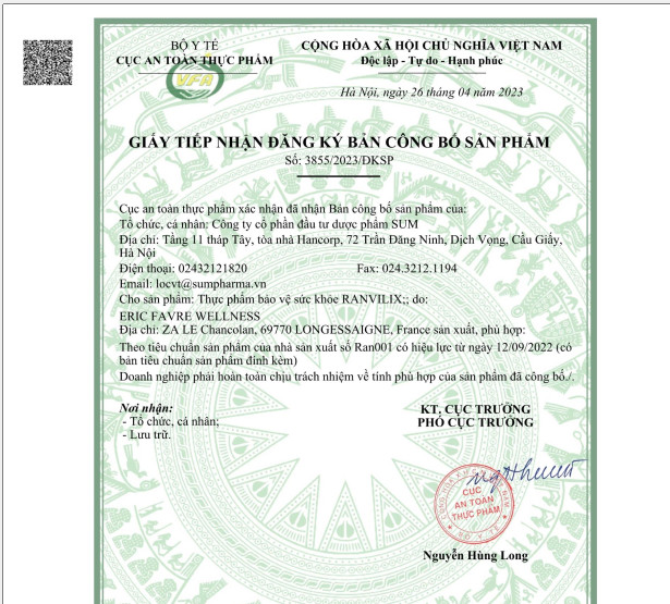 RANVILIX – HỆ XƯƠNG VỮNG CHẮC, TẦM VÓC VƯƠN XA TỪ PHÁP!