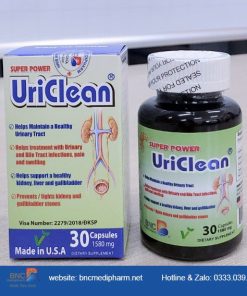 Sản phẩm Super Power UriClean được sản xuất bởi hãng Fine Living Pharmanaturals Hoa Kỳ sản xuất hoàn toàn từ nguyên liệu thảo dược có thành phần là Vitamin C, chiết xuất quả nam việt quất (Cranberry) và các thành phần khác là xenluloza, silicon dioxit, magiê stearat (nguồn gốc thực vật), gelatin giúp hỗ trợ duy trì sức khỏe cho đường tiết niệu tốt hơn, hỗ trợ làm tan sỏi thận, sỏi mật, ngăn chặn sự hình thành, tái phát sỏi…