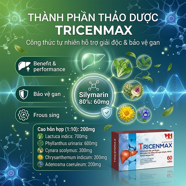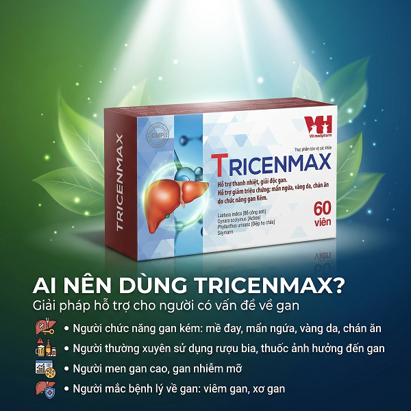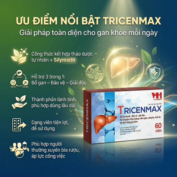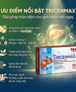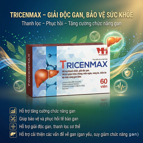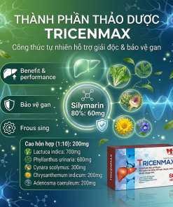 TRICENMAX là thực phẩm bảo vệ sức khỏe giúp bổ gan – giải độc – bảo vệ tế bào gan, hỗ trợ cải thiện các vấn đề về gan như men gan cao, gan nhiễm mỡ, suy giảm chức năng gan.