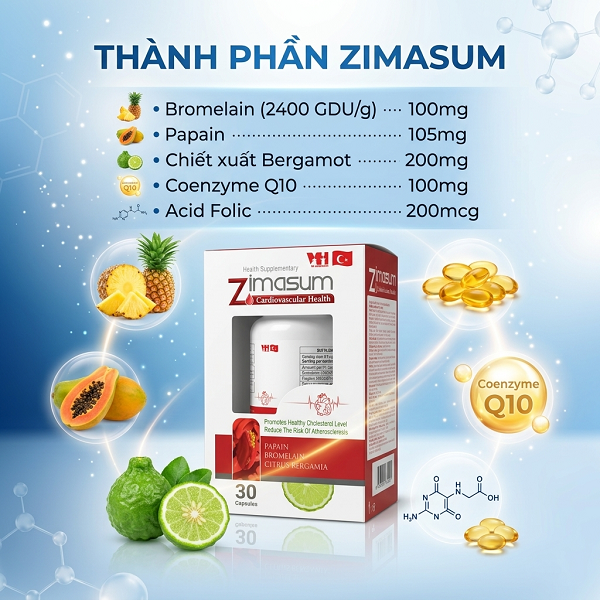Zimasum có hỗ trợ giảm cân không? Mặc dù mục tiêu chính là giảm mỡ máu, nhưng các enzyme Bromelain và Papain trong Zimasum hỗ trợ quá trình tiêu hóa và chuyển hóa tốt hơn, góp phần hỗ trợ kiểm soát thể trạng nếu kết hợp cùng chế độ ăn uống lành mạnh.